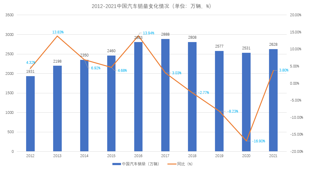 如此巨量的经济辐射能力,展现出了汽车产业在国民经济中举足轻重的地位。然而,自2018年起,中国汽车市场全年市场销量28年来首次出现下滑,并连续三年持续下降。尽管2021年出现了小幅恢复性增长,但中国汽车行业产销量高速增长期已经过去。